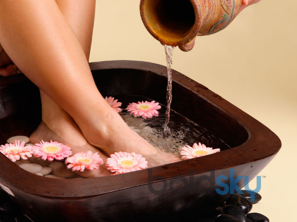Coconut oil is used to make your feet shine. All you need to do is pour a few drops of coconut oil in the hot basin and let your feet soak for about 15 minutes, before patting them dry.