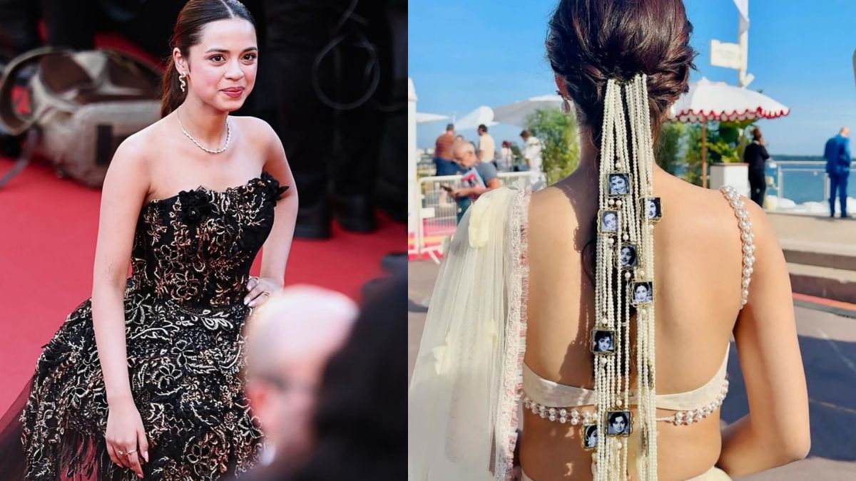 Young movie star Nitanshi Goel impressed everyone with her aesthetics, specially curated for her Cannes 2025 debut! She flaunted a handmade pearl string paranda, defined with small photo frames featuring miniature portraits of Indian cinema beauties like Vaijayanti Mala, Madhubala, Nutan, Waheeda Rehman, Hema Malini, Rekha, and Sridevi.