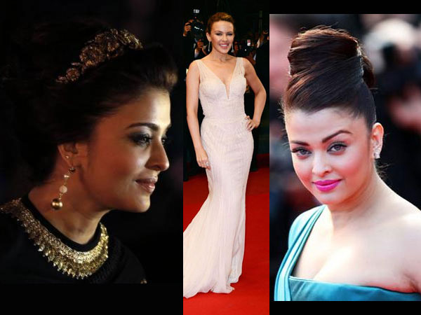 Aishwarya Rai's bun is the usual example of lacquered hairstyle. But what makes it stand out is the wreath that she is wearing on her head.