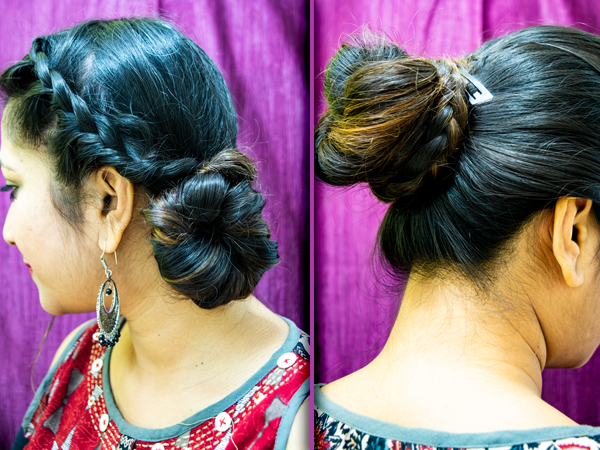 As the name suggests, this hairstyle involves a braid from one side, which gets intertwined into a bun at the side. Sounds pretty easy, right? Well, it is! And once you try it, it will garner you a lot of compliments.