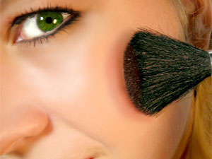 1. Apply foundation with a sponge to cover discoloration and make a uniform skin tone. Finish with compact powder.