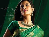 1.Sea Green – The most famous Indian bridal wear colour trend 2011 is sea green. Sea green in lighter shades and in many other different combinations with red, blue and purple have proved to be one of the best bridal wear colour which complements very well with diamonds and gemstones like emerald and jade. Platinum gold jewellery is also the perfect for a sea green Indian bridal wear.