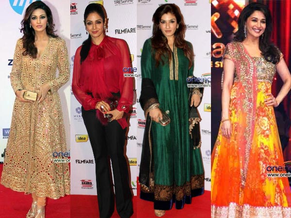Celebrity fashion is being defined by the actresses of previous generation in their forties or nearing 40. The Bollywood fashion meter is red hot when it comes to actresses like Madhuri Dixit, Sonali Bendre, Karisma Kapoor, Juhi Chawla and Raveena Tandon. Surprisingly, all these actresses have made their comeback in 2012.