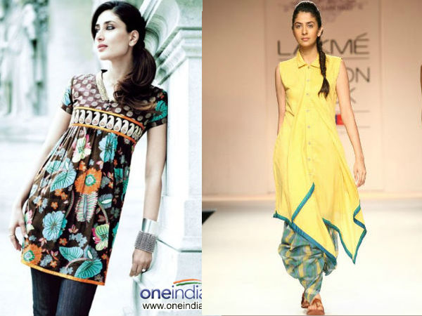Few months back, Katrina Kaif wore this tunic kurti that was cut from the waist. Recently, at Lakme Fashion Week 2013, a similar pattern of kurti was seen on the ramp. Looks fashionable!