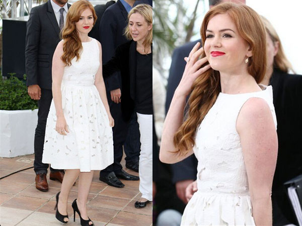 Isla Fisher who is one of the actors in 'The Great Gatsby' seems to be flaunting the colour of the season, white! When she arrived at the photo call, Isla Fisher was donning a cute white lace dress. The dress was accesorised with small earrings. Isla looked like a delicate lady in white when she arrived at the photo call of The Great Gatsby at Cannes Film Festival 2013.