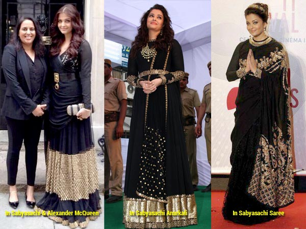 Which of these three black and gold looks of Aishwarya Rai In Sabyasachi do you like?