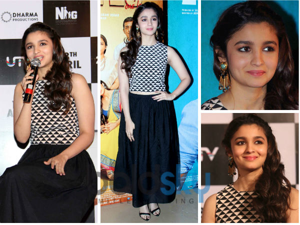 To go along with this chess top, the beauty wore a black long skirt which was the right opt to suit the event, which was the trailer launch of her movie, 2 States.