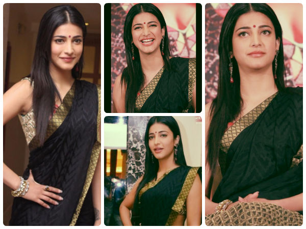 Shruti Haasan is one of those actresses in tinseltown who dresses to impress. The young diva was spotted in two traditional outfits recently at two separate events. Wearing a black saree and a red lehenga to grace these occasions, Shruti Haasan looked fabulous.