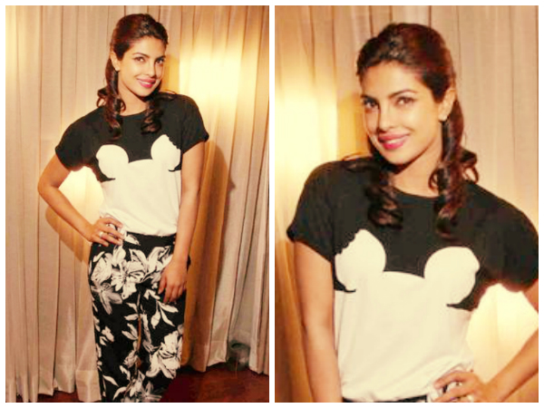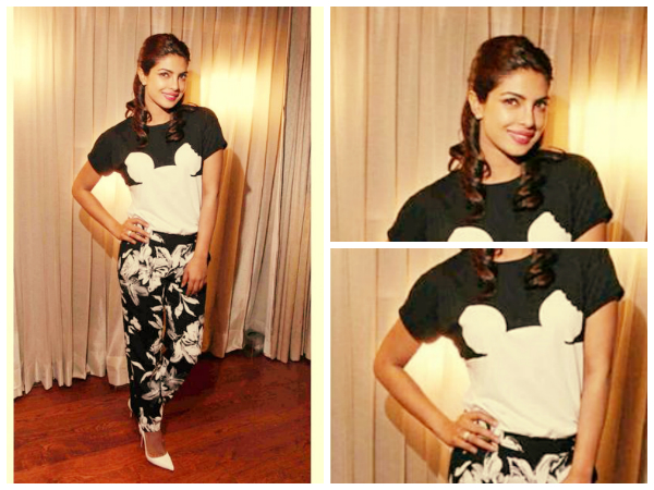 Priyanka Chopra was seen in one of her cutest looks so far. This leggy lass has gone monochrome in a Zara ensemble for a promo shoot of Disney. Styled by Ami Patel, this beauty looked stunning at the shoot.