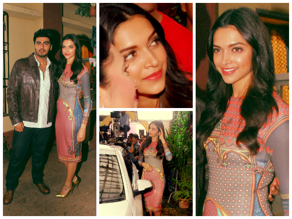 Deepika Padukone looked amazing in a printed bodycon dress by designer duo Pankaj & Nidhi. Spotted with co-star Arjun Kapoor on the sets of TV soap ‘Yeh Hai Mohabbatein' to promote ‘Finding Fanny', she definitely grabbed a lot of attention.
