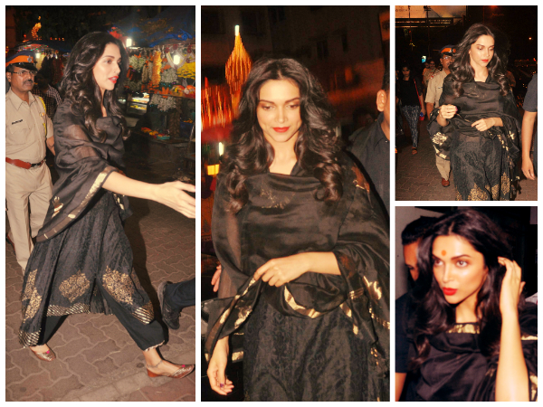 Deepika Padukone is one of those actresses who loves the colour black. Spotted at the Siddhivinayak temple in Mumbai, Deepika Padukone looked quite chic in a salwar kameez. Going in for an ethnic and traditional temple style, Deepika looked a stunner on the holy premises.