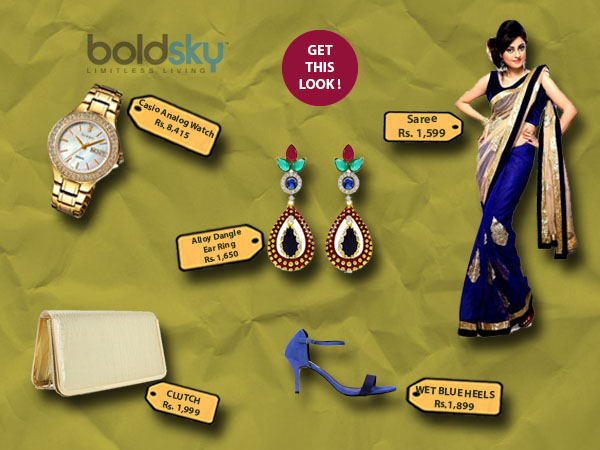 On the festival of Karva Chauth 2014, gift your special woman with a colourful and vibrant Riti Riwaz Georgette Saree. Add in a gleaming effect with Spyra Alloy dangle earrings. To complete your lady love's look this Karva Chauth, the Addons Clutch and Fossil watch is a must buy.