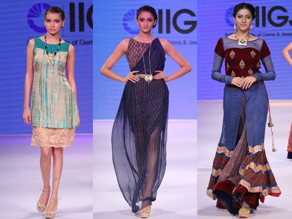 At the IIJW 2014 on day 3, we saw a lot of sheer and see through dresses. The butterfly golden necklace adds a perfect touch to the outfit too.