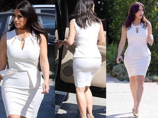 The American reality star seems to have undergone some makeover ahead of her much awaited wedding. Kim Kardashian was spotted wearing a plain white peplum style knee length dress from KK collection.