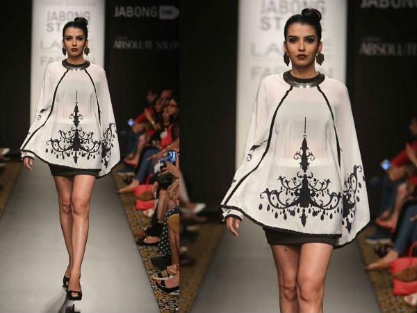 Sheer added a touch to the colour combination on the ramp. The skirt was decked withChandelier print in white.