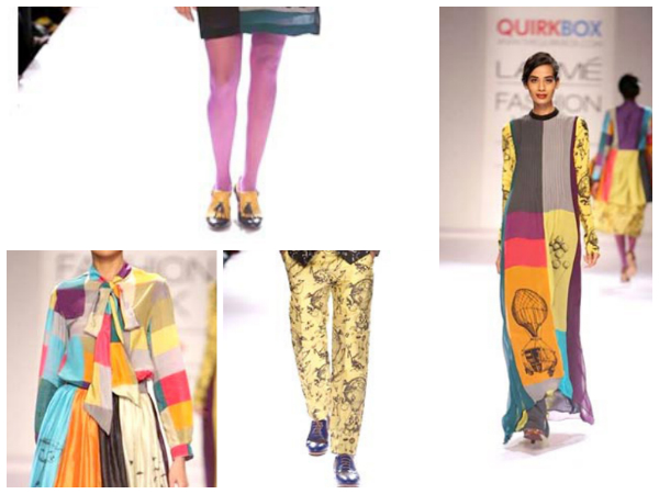 On day 4 of Lakme Fashion Week 2014, it was a very pleasant surprise. The models who walked the ramp were colourful and bright. Their styles had a lot of neon colours too. Inspired by the whimsies of Bombay, 'Quirkbox' stormed the ramp at LFW 2014. Many Bollywood celebs such as Esha Gupta, Deepika Padukone, Alia Bhatt, Pallavi Sharda, Kajol just love Quirkbox.
