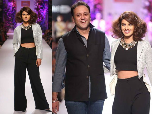 Priyanka Chopra looked as sensational as ever in black. The indigo jacket and accessories made her look more stunning on the ramp for Varun Bahl.