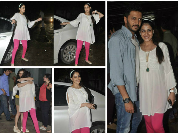At the Lai Bhari Screening, Riteish Deshmukh held his lovely wife's hand and had his eyes on her right through the night. The pregnancy glow on Genelia also made Riteish's mum who present at the screening happy.