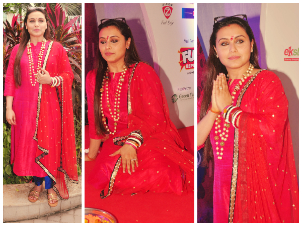 Ganesh Chaturthi is the biggest festival in Mumbai and Bollywood leaves no stone unturned to participate in the festivities. Celebrities took their time visiting pandals and seeking blessings from Ganapati Bappa on Ganesh Chaturthi. Rani Mukerji who is riding high on the success of her movie ‘Mardaani' also made a trip to visit Lord Ganesha. Rani Mukerji was seen in a red suit at Fun Republic where she paid her respects to the eco-friendly Ganesha.