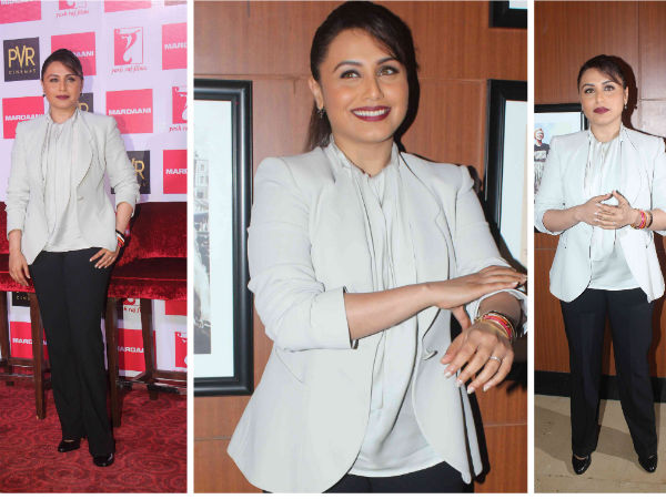 Take a closer look at Rani Mukerji in the 'Mardaani' press event.