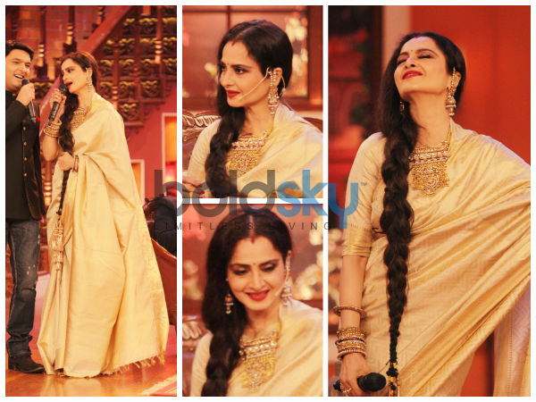 On the sets of 'Comedy Nights With Kapil', Rekha was gleaming. She also grabbed a lot of attention with her offbeat emotions!
