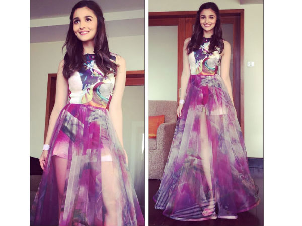 We loved the overall look of Alia Bhatt. The printed sheer skirt, the white romper underneath and the cute hairstyle, everything was perfectly matched with the look.