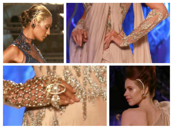 The sparkling bedazzled gloves on these models went well with the silver detailing on their clothes. We also got to see some of these models wearing ear cuffs, and that too on both ears. Kalki Koechlin, the first showstopper of AICW 2015 graced the ramp for designer Gaurav Gupta and she too sported a few pretty accessories. Take a look at Gaurav's stunning makeup ideas and accessories: