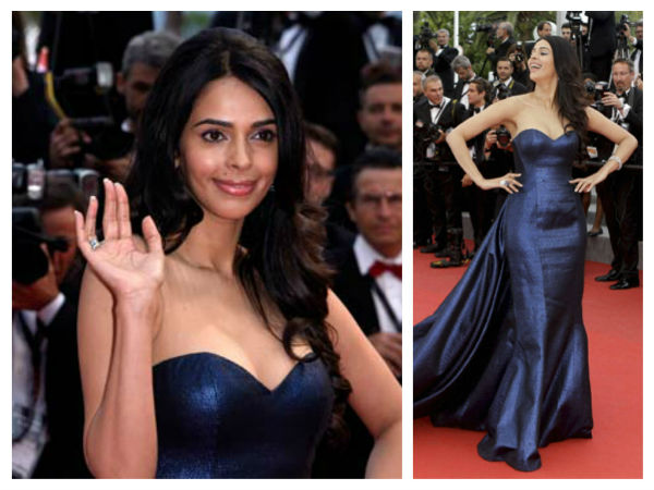 Mallika's previous Cannes appearances were okay. But, this blue Georges Hobeika ensemble was the cherry on the cake and is the best.