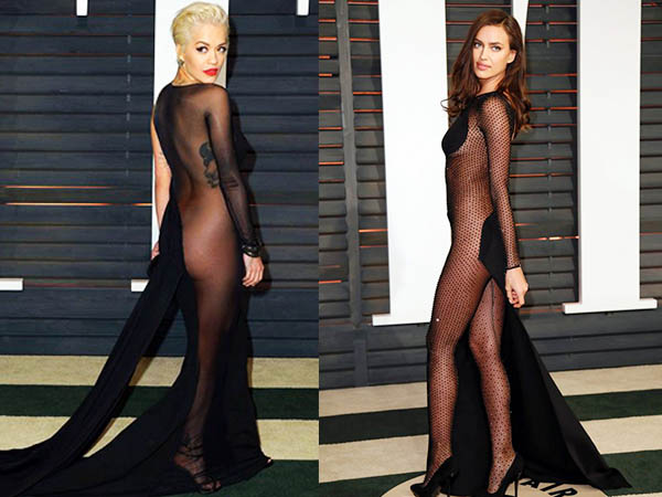 On the other hand, Irina Shayk made sure she defeated Rita's look at the Vanity Fair post-Oscars party 2015. Perking her booty up and showing off tons of flesh through her black number, Irina was indeed the second best looking sexy woman at the party. She rounded her half nude dress with not so much makeup as she wanted to focus everyone's attention on her black see through ensemble.