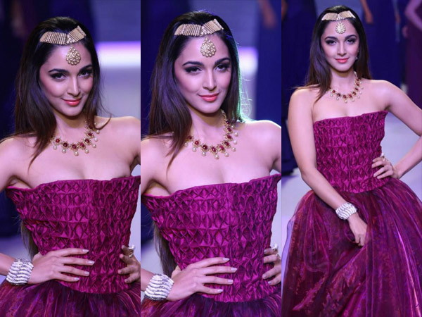 Kiara wore a Fuchsia pink coloured strapless gown which looked gorgeous on the star.