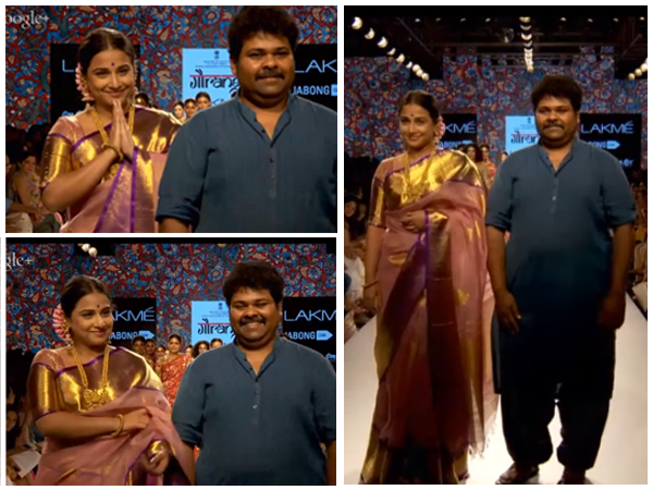 The main reason behind this collection is because it pays tribute to various summer-friendly fabrics. Vidya Balan who walked the ramp for Gaurang Shah at the Jabong Lakme Fashion Week 2015 wore a heavy onion coloured saree with thick gold piping at the borders. She looked amazing and so pleasant in the warm colour.