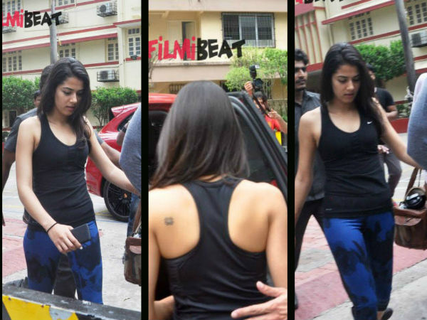 What caught our attention was a cute square shaped tattoo Mira flaunted on her bare back while walking towards the car. Unfortunately, the tattoo is not clearly visible in the pics but it looks chic.