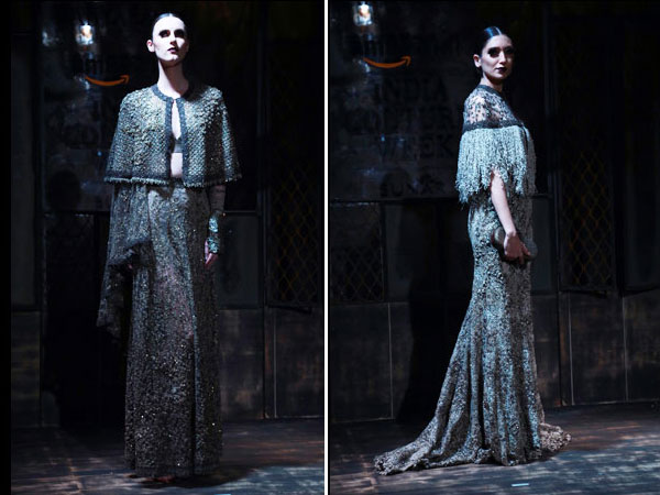 The Bater Couture 2015 by Sabyasachi is all about being gothic, untamed, a touch of carcass, bold, aggressive, desolate, haunted, cruel and much more. Looking at the models wearing the collection all we can say is this is a fine piece of work created by designer Sabyasachi at the AICW 2015.