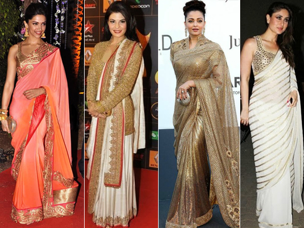 Golden sarees are much loved by all, but they don't suit everyone! Bollywood celebrities are usually seen in golden sarees on every occasion and the way they style this glitsy look it seems just about perfect.