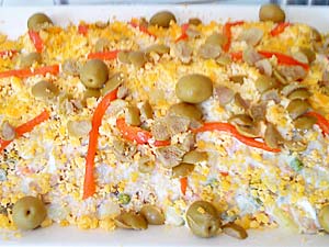 Salads are health food, so the best salad recipes are always low fat salad recipes. What is amazing about this Russian salad recipe is that it has adapted a legendary salad to a low fat chicken salad recipe for our current health needs. The trick in this low fat salad recipe is to use yogurt instead of mayonnaise. You may think it will kill the taste but you will be surprised to know it doesn't. As we already know, Russian salad is a recipe that can be made with leftover chicken, this low fat chicken salad recipe maintains that as a postulate of the original recipe. However, as this is a low calorie salad recipe, it is better if the leftover chicken is 'boiled' and not fried. The other ingredients remain the same.