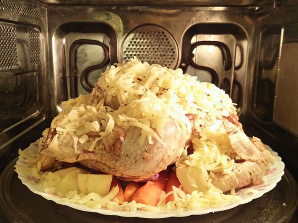 - Note: If you're using a microwave, do ensure that its a convection enabled on. Baking does not happen because of the Microwave. It needs heat to be generated. Most convection ovens have instructions on how to use when baking chicken. Please go through the same before you start.