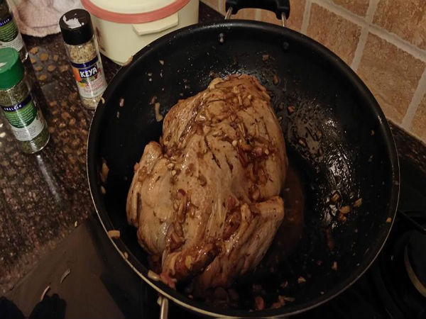 The chicken is first marinated with a mix of exotic spices and herbs. After which it is roasted till done. This French roast chicken is a delight for all chicken lovers.