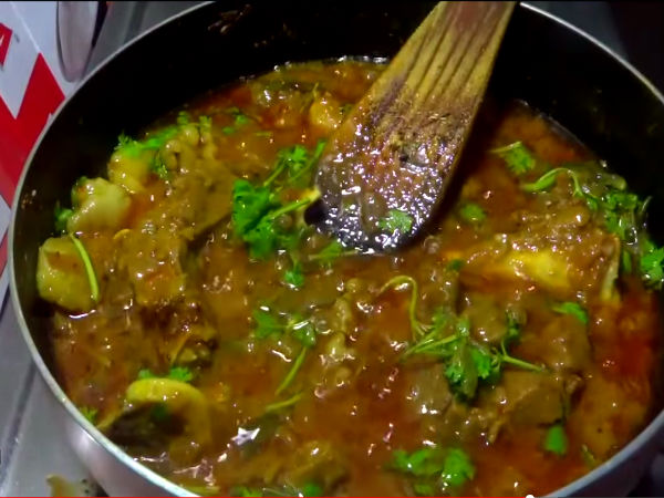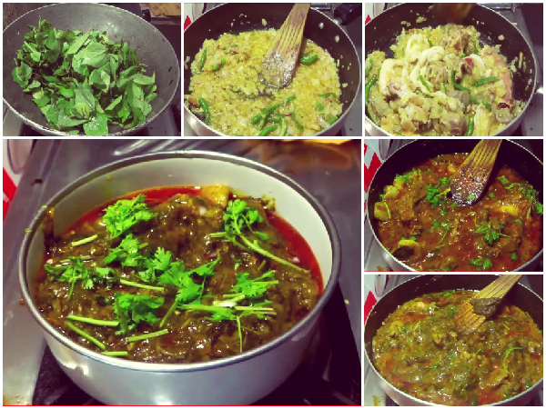 Andhra cuisine is famous for its use of variety of spices and leafy greens in the preparation. The gongura mutton curry is recipe is actually a variation of the normal Andhra mutton curry. It does not use too many spices which lets the flavour of the gongura leaves come out very well. It also gives a mild tangy taste to the mutton curry which makes this mutton recipe all the more irresistible.