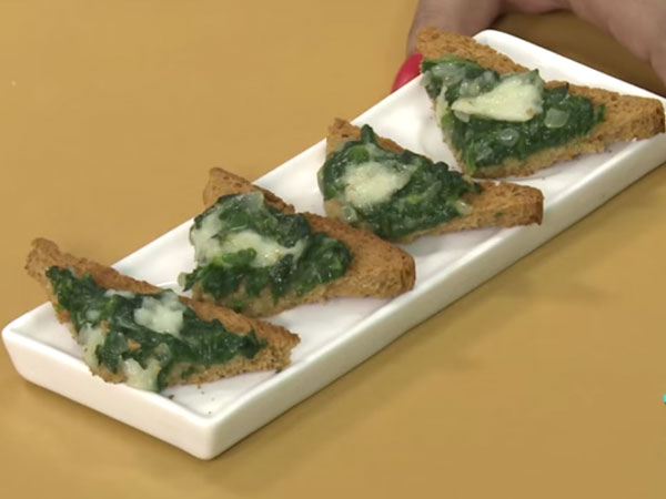 Spinach in the toast is very healthy and nutritious and this is also one of the yummy way to eat spinach. It will provide you with calcium and make your bones strong.