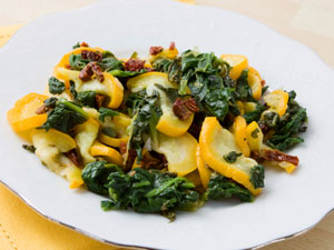 - Meanwhile heat about 1 tablespoon oil in a pan and saute the red chillies in it. Transfer the spinach to the pan and season it with pepper.