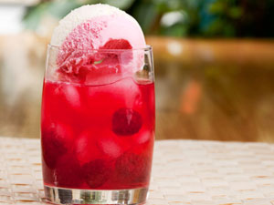 - Put the frozen watermelon and raspberry jelly over the crushed ice in the glasses and then add some faluda over it.