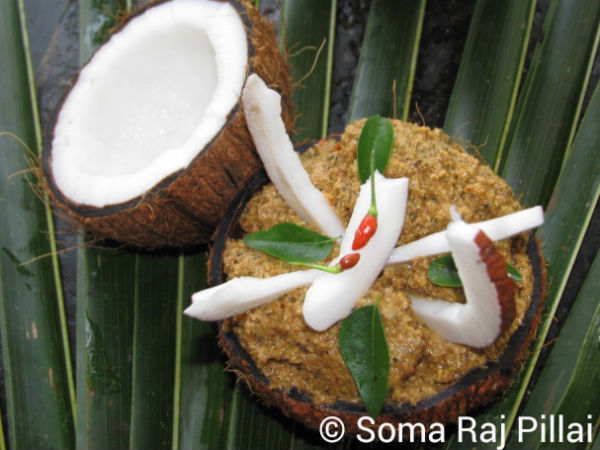 Chili or 'Mareecham' in Sanskrit, is a rich source of Vitamin C, good amount of minerals like potassium, manganese, magnesium, iron, B- Complex group of vitamins and other disease preventive and health promoting properties. Coconut or 'Narikela' in Sanskrit, is a valuable source of magnesium, zinc, iron, calcium, copper, manganese, B-Complex vitamins and potassium. The dietary fibre of coconut is beneficial of preventing colon cancer and heart diseases.