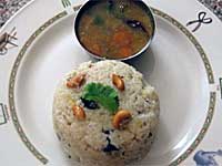 8.Garnish pongal with chopped coriander leaves. Serve pongal hot with a teaspoon of ghee. Tasty Khara pongal ready to serve.