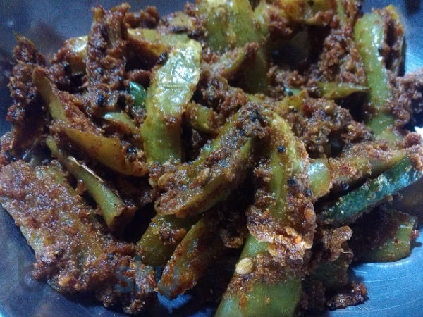 The side dish is ready to be served. Have masala mirchi with rotis or rice.