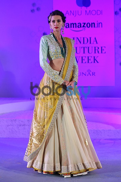 About the brand: A revered couturier, Anju Modi’s designs are incensed with passion, romance & innocent seduction. They have over the last two decades, mesmerized all whom areprivileged. The House of Modi has two labels under it. Anju Modi and the other being am:pm which is the brainchild of her children Ankur & Priyanka Modi.She supplies to a plethora of high-end boutiques, for her NRI clients and International market,in Jeddah, Kuwait, Bahrain, Dubai, London, California, San Francisco, Miami, Singapore and Hong Kong.