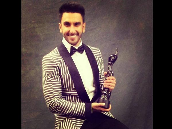 Ranveer Singh shared his picture, holding the 'Black Lady' aka the honourable IIFA Award which he won in the Best Male Actor category for Bajirao Mastani. He wore a decent suit but the stripes on the blazer stand out and bring uniqueness to the attire.