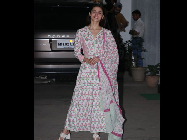 The actress draped a complementing light dupatta with her ensemble. The dupatta was also bordered in dark pink and mint green hue. Alia looked impeccable and teamed her ensemble with white-hued block heels. Alia's makeup was dewy-toned with a bright pink lip shade and soft kohl. The sleek tresses rounded out her look. We thought Alia looked stunning. Don't you think so too? Let us know that in the comment section.