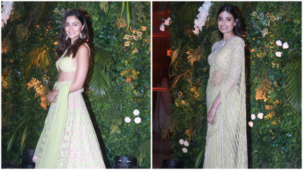 Anushka Ranjan's sangeet ceremony was star-studded with celebs including Alia Bhatt, Raveena Tandon, Vaani Kapoor, and Athiya Shetty in attendance among others. They looked their traditional best and while some flaunted elegant sarees, others inspired us with their wedding-perfect lehengas, which you ladies must take notes of. So, let's decode their outfits and looks for some fashion goals.