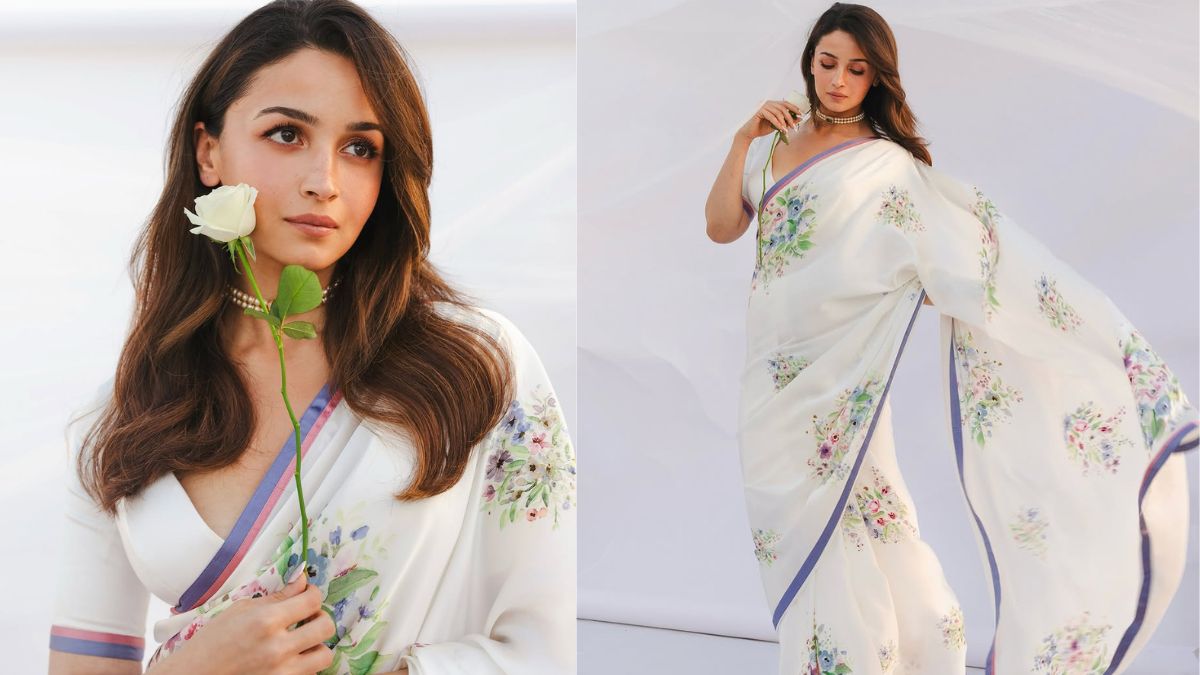 'Jigra' movie star's ability to effortlessly combine classic Bollywood glitz with a contemporary sensibility was what made her appearance unique. Her saree's flower designs brought back memories of Raj Kapoor's movies, which frequently praised nature with their picturesque settings and love stories. Her blouse's modern cut, however, maintained the ensemble appropriate for the modern fashion scene.