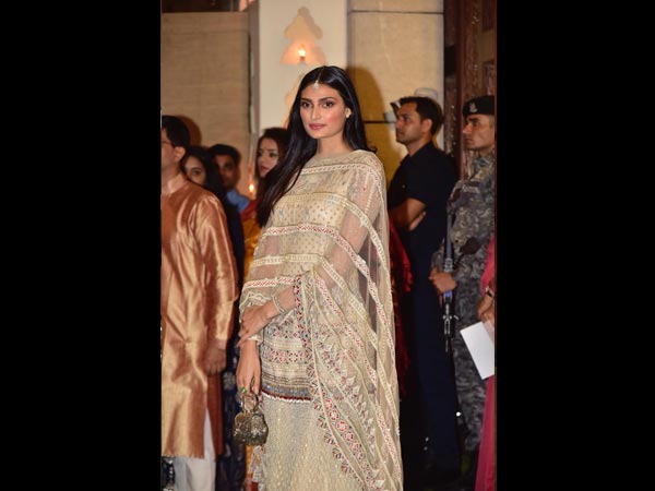 Athiya Shetty stepped up her fashion game for the Ambani's Ganesh Chaturthi celebrations. She looked graceful in her sharara set, which was by Tarun Tahiliani. The actress, who was last seen as a showstopper at the Lakme Fashion Week Winter/Festive 2019, went for an embellished number and balanced it with minimal styling. Let's take a look at her outfit of the night.